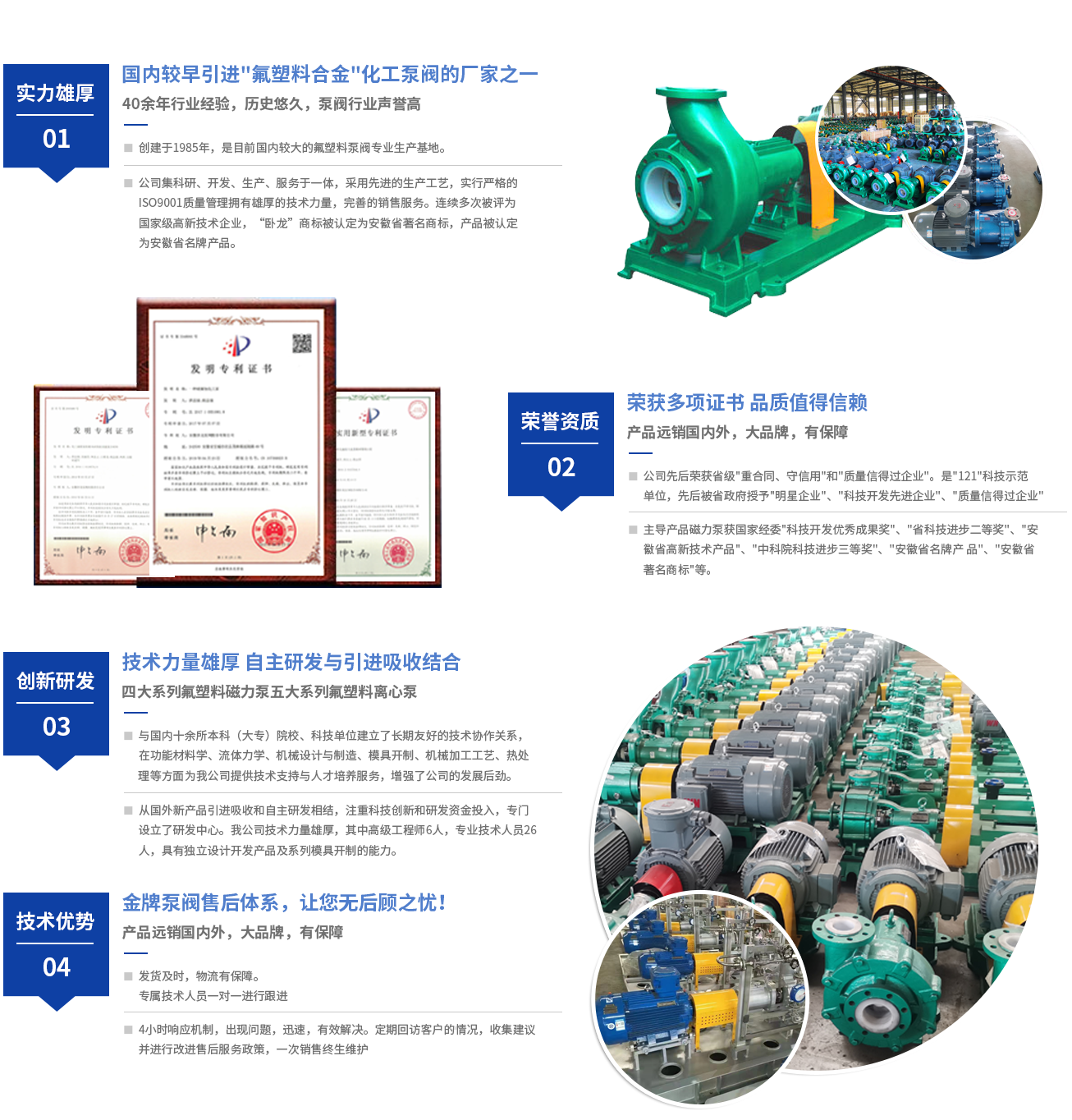 ??安徽臥龍泵閥股份有限公司前身涇縣氟塑料制品廠創(chuàng)建于1985年,是國內較早引進中科院上海有機化學研究所專利材料——"氟塑料合金",并以此耐腐蝕材料專業(yè)生產制造化工泵、閥、襯氟管道等產品的企業(yè)。公司經過歷次的改制變革,2015年更名為安徽臥龍泵閥股份有限公司。